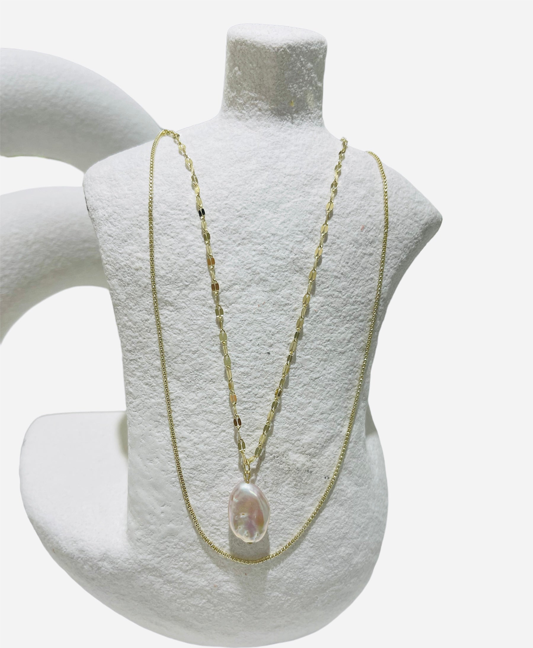 Double chain necklace with a freshwater pearl. Sterling silver coated in 18k gold