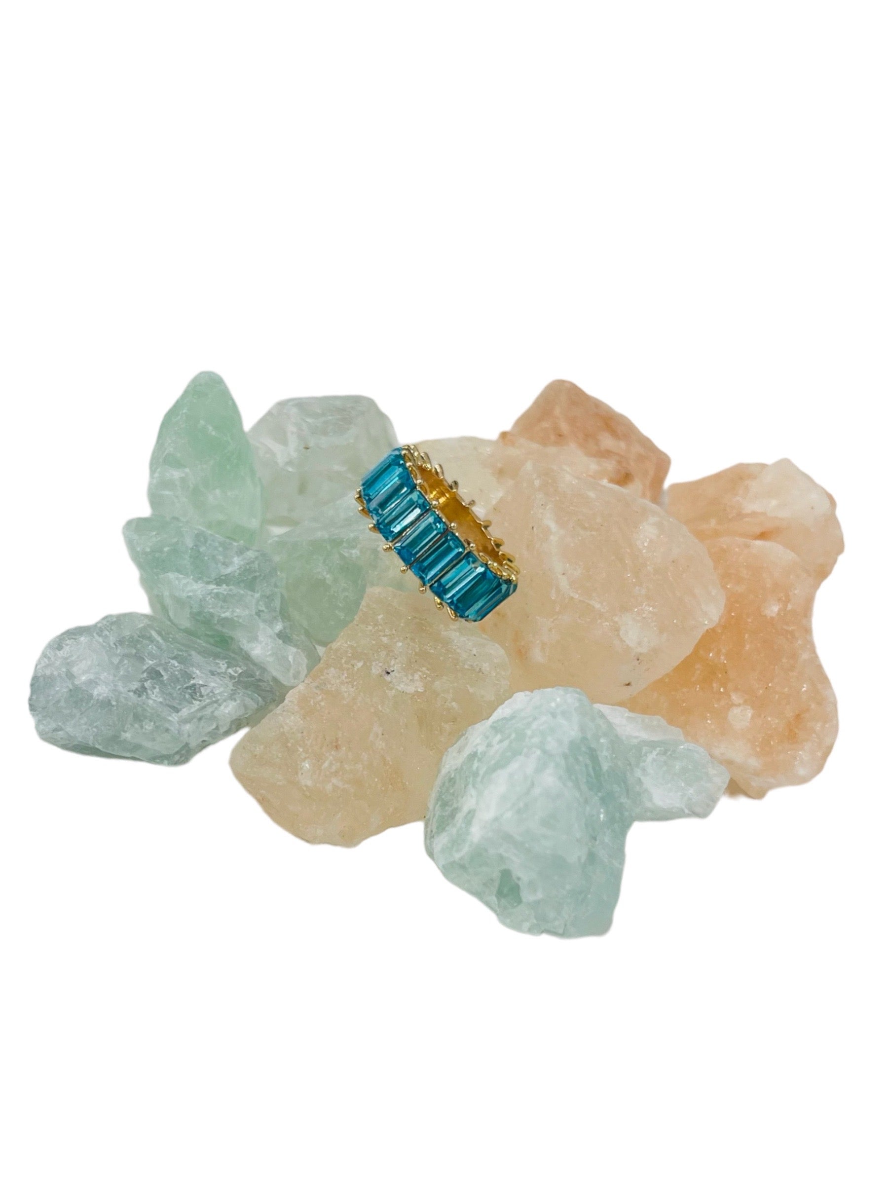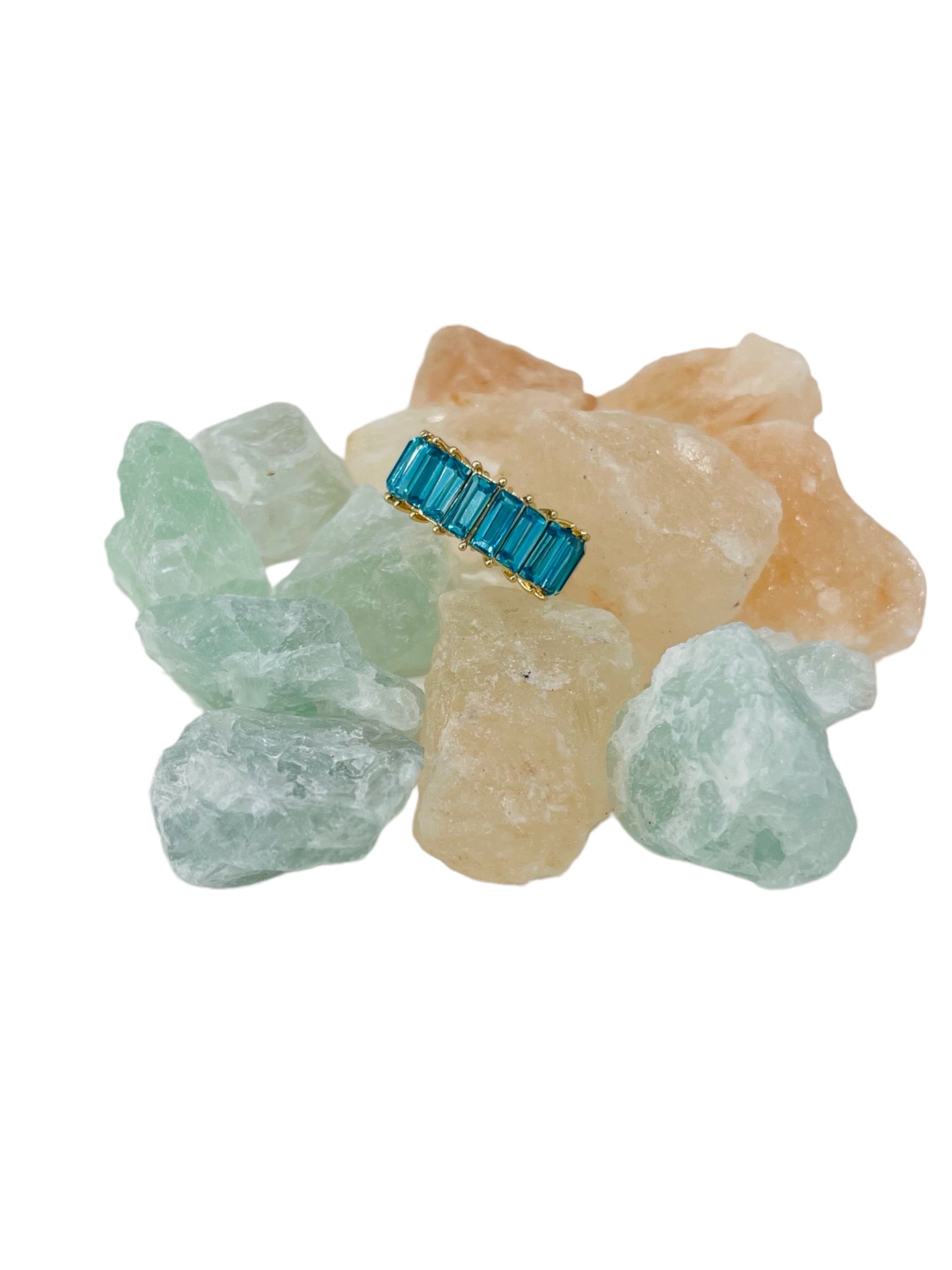 Emerald shaped Zirconia, coated in 18k Gold. Available in gold and silver