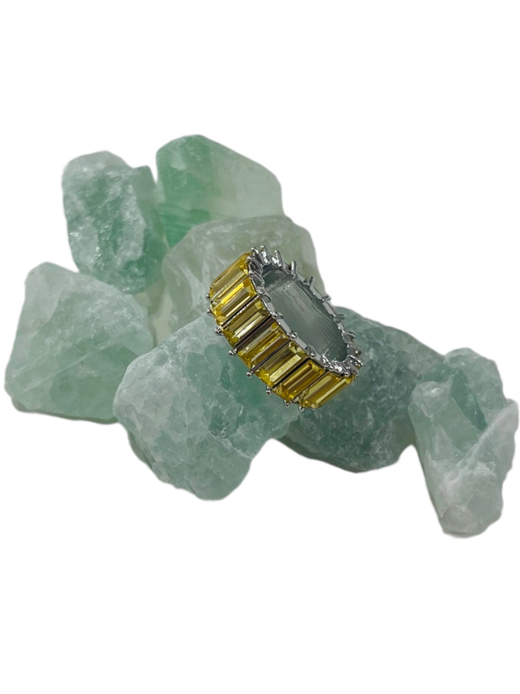 Emerald shaped Zirconia, coated in 18k Gold. Available in gold and silver